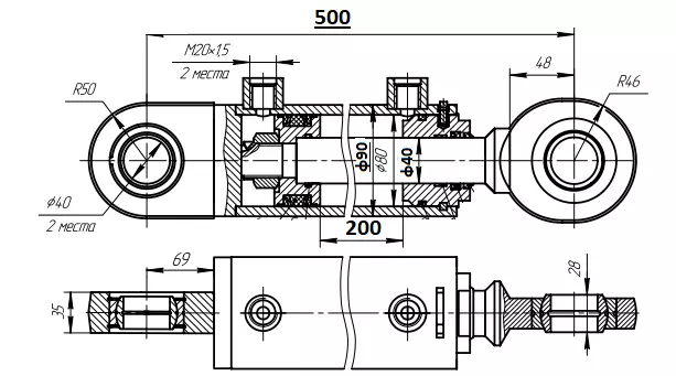 Гідроциліндр КУН 80х40х200.500 під палець
