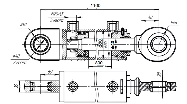 Гідроциліндр КУН 80х40х800.1100 палець МС80/40х800-3(4).22(1100)