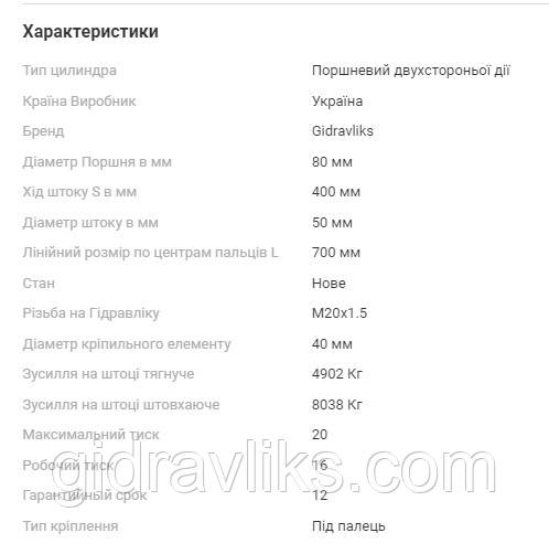 Гідроциліндр 80х50х400.700 призначений для встановлення на фронтальні навантажувачі типу КУН. Основна функція — керування кутом нахилу або підйомом ковша. Підходить для тракторів МТЗ, ЮМЗ, Т-40, Т-25, Т-16 та іншої сільськогосподарської техніки з навантажувальним обладнанням.