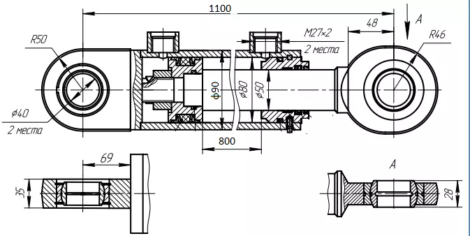 Гідроциліндр КУН 80х50х800х1100 ш.с МС80/50х800-3(4).11(1100)