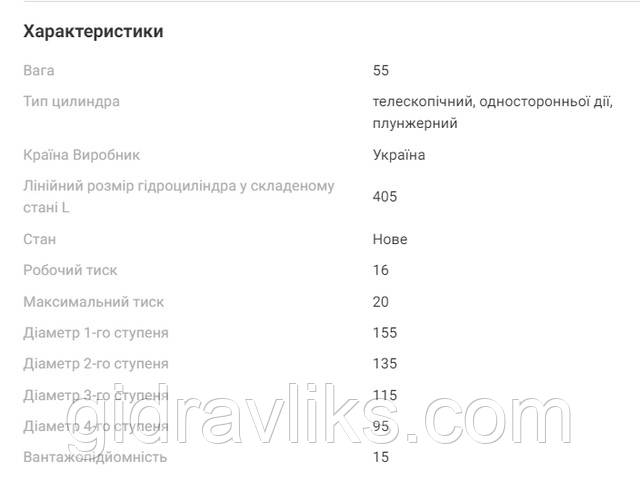 Цей телескопічний гідроциліндр із 4-ма потужними ступенями та